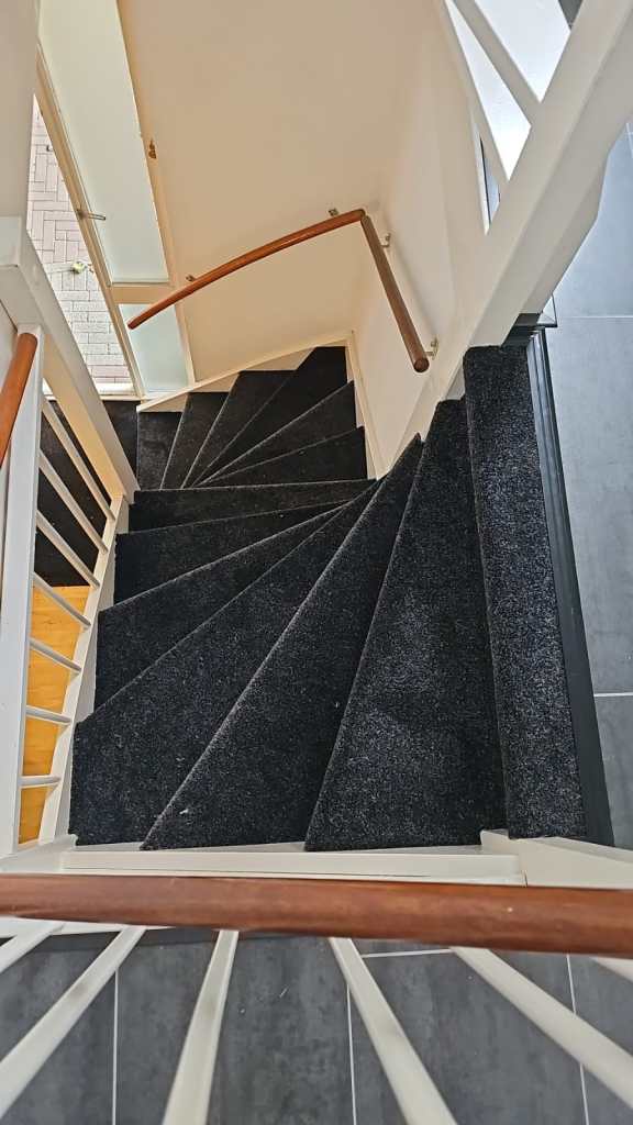 - Trapbedekking met tapijt: Tapijt op trappen biedt niet alleen comfort en een warme uitstraling, maar zorgt ook voor extra grip en veiligheid. Het is een uitstekende keuze voor trappen die veel worden gebruikt, omdat het geluid dempt en de trap een luxe uitstraling geeft.